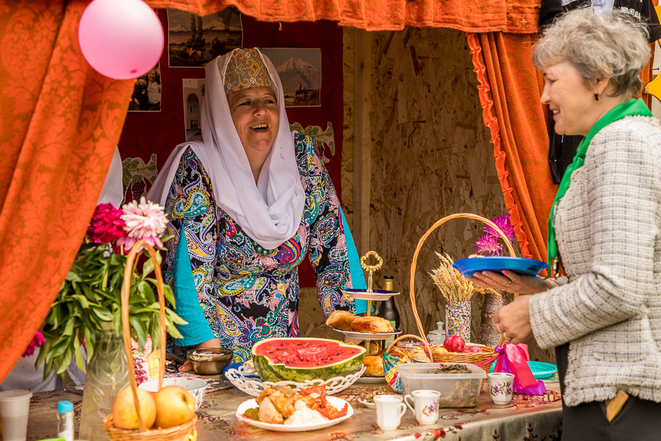 Участники «Этнодеревни» не отпустят вас без угощения или без фото на память!