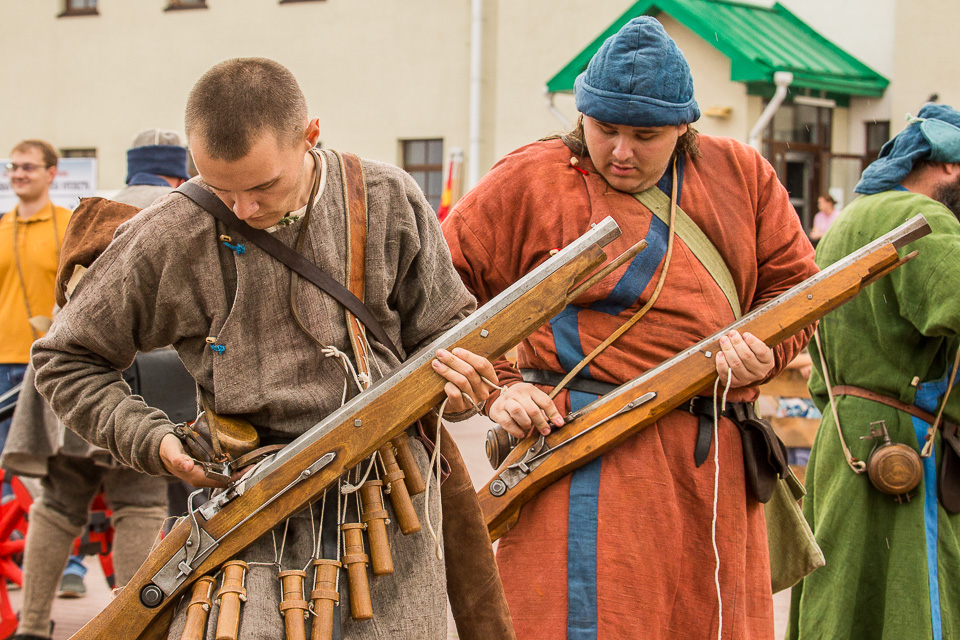 Служилые люди увлекательно рассказывают об устройстве фитильных ружей