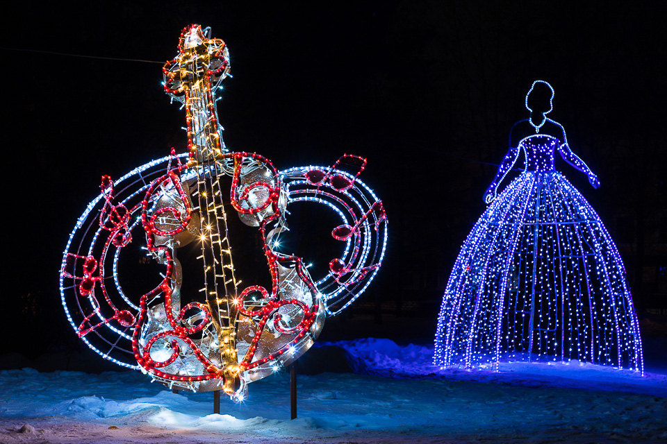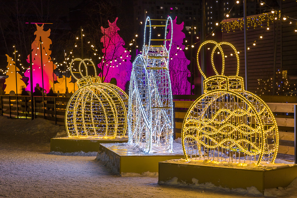 Гуляя, можно разглядывать детали новогодних световых конструкций