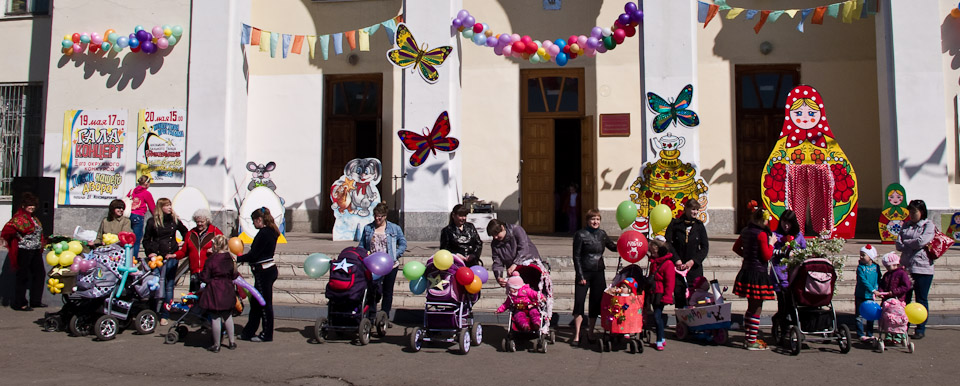 Парадом колясок «Мои четыре верных колеса» открылось шоу «Вперед, малыш!», которое состоялось в минувшие выходные на площади у ДК «Железнодорожник». Детские транспортные средства, с любовью и фантазией украшенные мамами, папами и бабушками, были по достоинству отмечены жюри и зрителями.