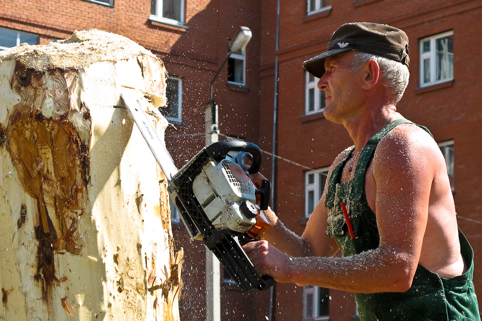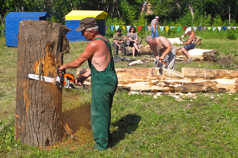 «Праздник топора» собрал резчиков по дереву. Впервые в Омске и области конкурс проводился в таком формате, когда мастера бок о бок работали на одной площадке в течение полутора дней.