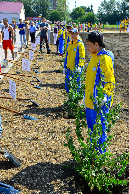 Около трех тысяч омичей посетили сад «Сибирь» в день открытия. Символический ключ от обновленного сада мэр Омска Вячеслав Двораковский вручил председателю комитета ТОС «Молодежный» Татьяне Дымочкиной.