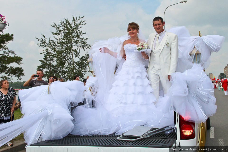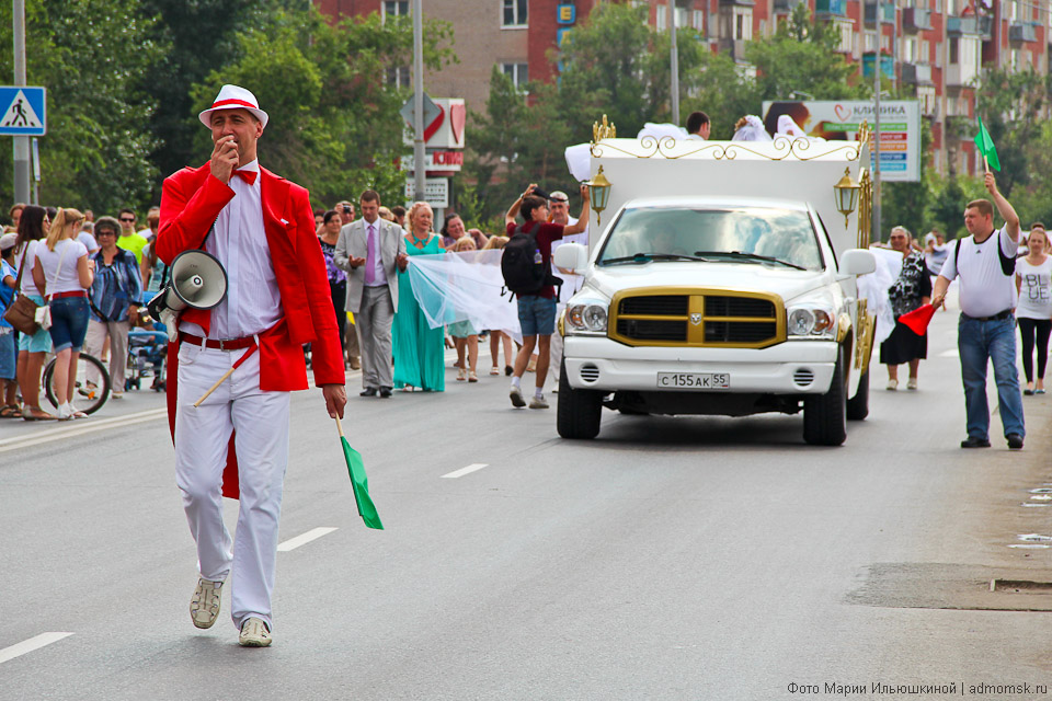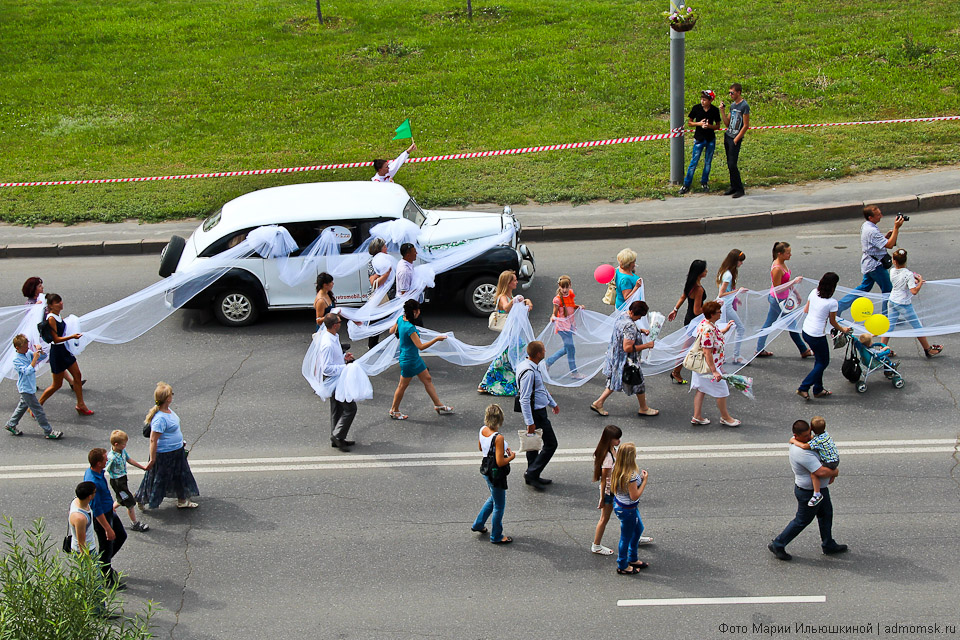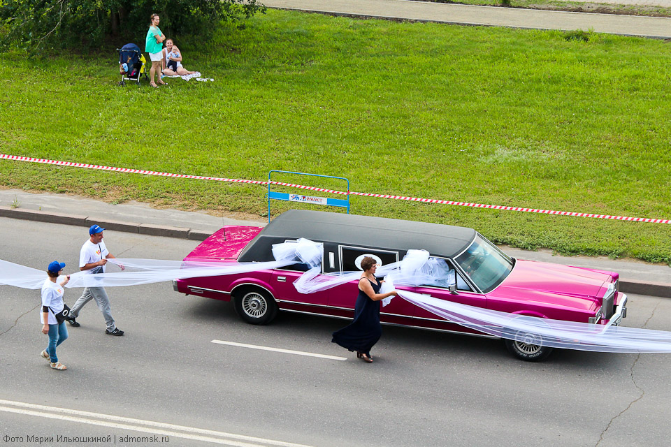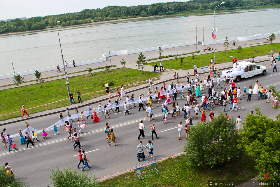4 августа по Иртышской набережной проследовал необычный свадебный кортеж: тридцать лимузинов понадобилось, чтобы сопровождать фату невесты длиной более 3,5 километров. Это достижение будет внесено в Книгу рекордов Гиннеса.