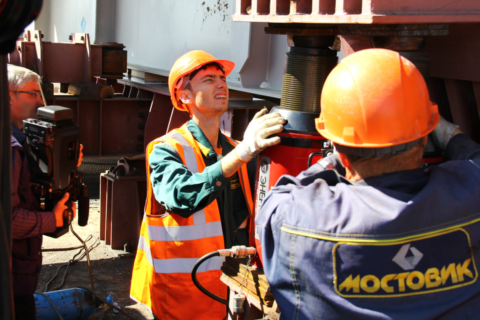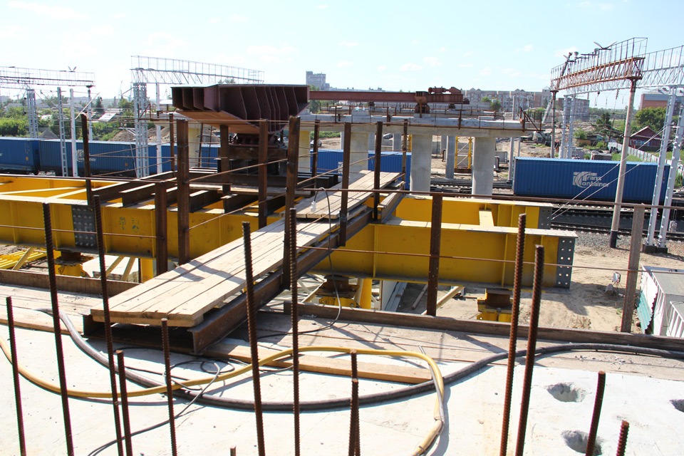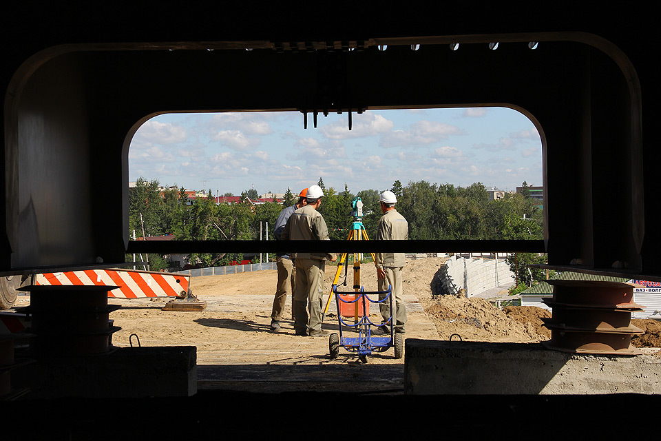 Монтаж пролетного строения путепровода осуществляется методом продольной надвижки. При благоприятных условиях монтажные работы будут продвигаться в среднем на 8 метров в неделю. Всего будет смонтировано 78 металлических балок, чей общий вес превышает 700 тонн.