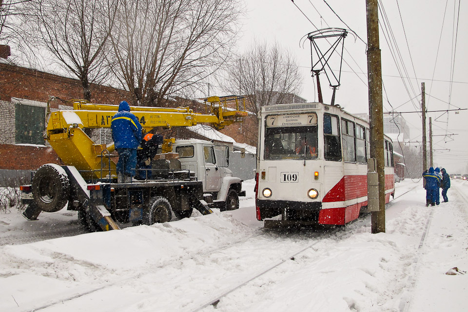Перекрёсток, через который проезжает общественный транспорт — автобусы маршрутов № 15 и № 45 и трамвай № 7, — больше не мог оставаться без внимания городских служб, отвечающих за организацию и безопасность дорожного движения. 22 января на пересечении Чернышевского и Октябрьской заработал светофорный объект.
