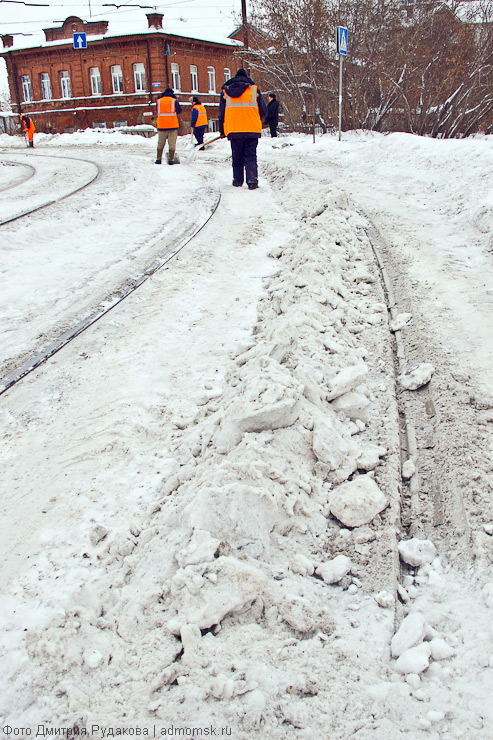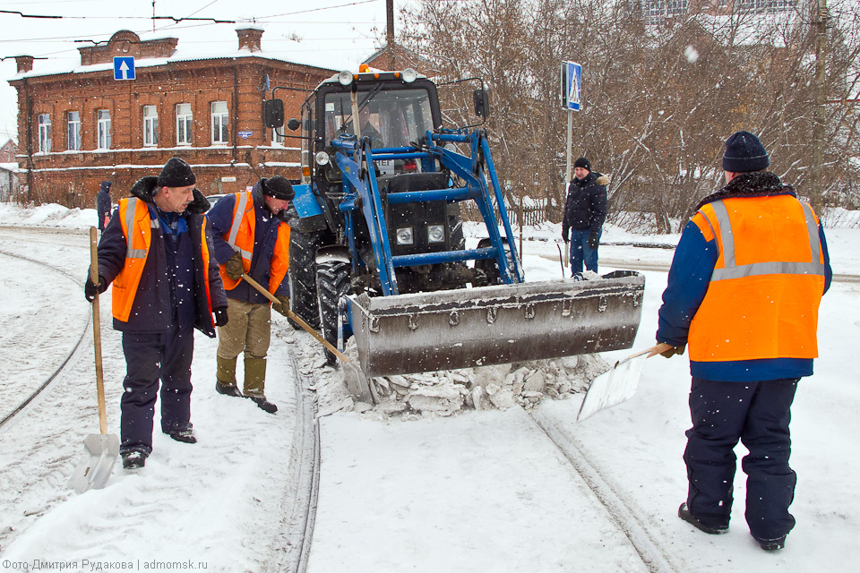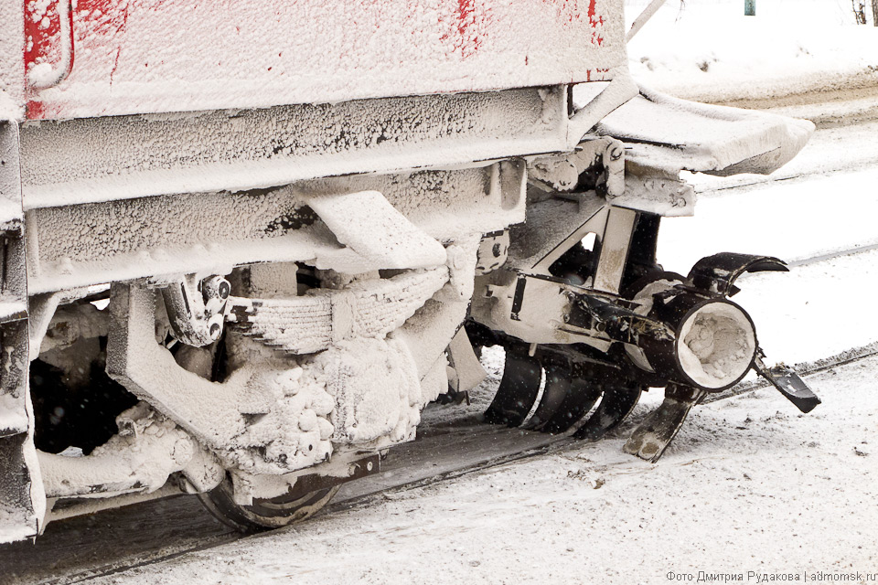 Трамвайные пути постоянно нуждаются во внимании городских служб, но особенно это важно снежной сибирской зимой.