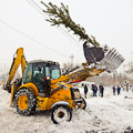 На участок, где планируется провести зимнюю посадку, собирается техника и специалисты по озеленению нашего города
