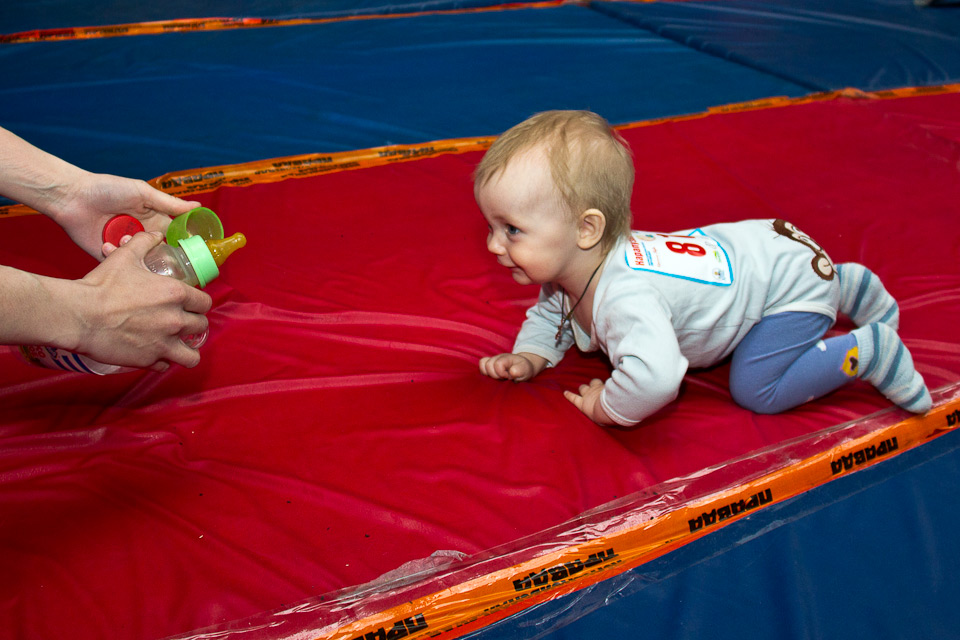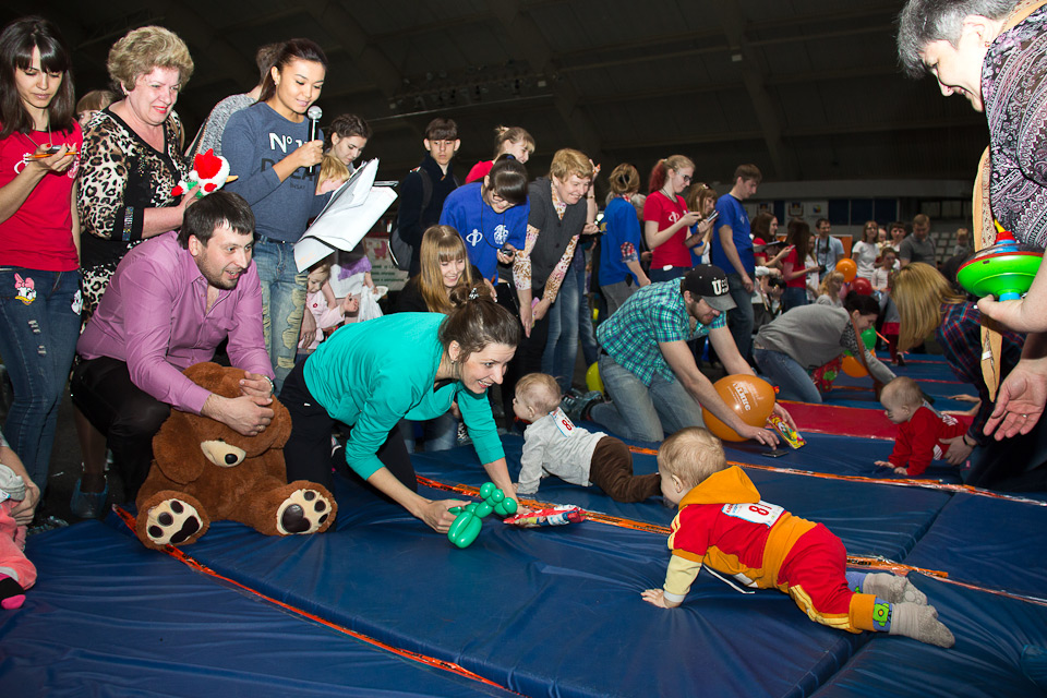 12-й городской чемпионат «Карапузы, на старт!» прошел сегодня в Омске на базе гостеприимной «Красной звезды»: порядка 300 малышей в возрасте до 3 лет соревновались в том, кто быстрее проползет шестиметровую дистанцию. Если сравнивать с 2014 и 2013 годами, то нельзя не отметить, что детей, призов и номинаций стало больше!