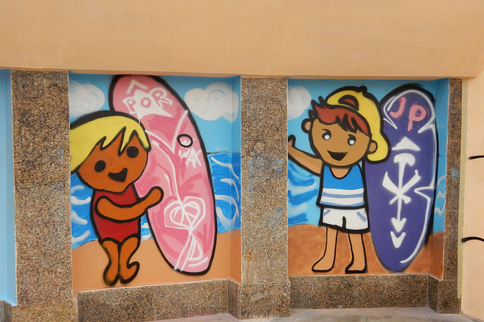 Юные художники оформили стены подземного пешеходного перехода на улице Щербанева на тему «Дети города и спорт».