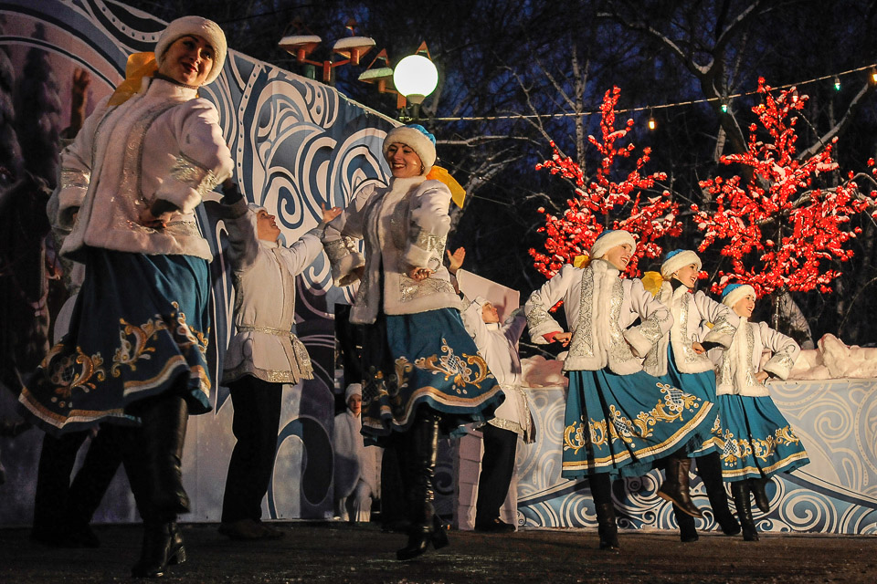 28 декабря Главная городская елка на территории Омской крепости открылась яркой театрализованной программой в исполнении муниципальных творческих коллективов.