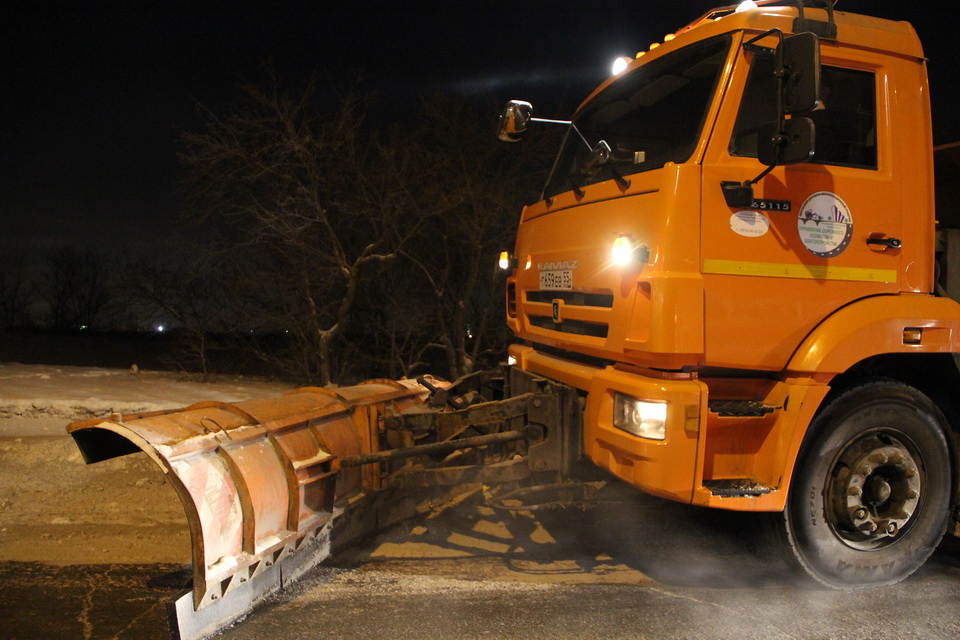Каждую ночь более 30 единиц специализированной техники Управления дорожного хозяйства и благоустройства чистят основные магистрали Левобережья. Ежесуточно вывозится более тысячи кубометров снега.