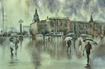 Гюльнара Хабибулина, 1968 г.р. Дождливый день. 2015. Бумага, акварель; 60×80. Поощрительный приз «Город»