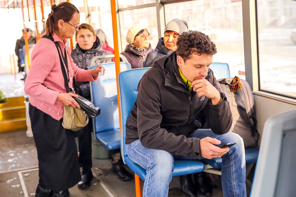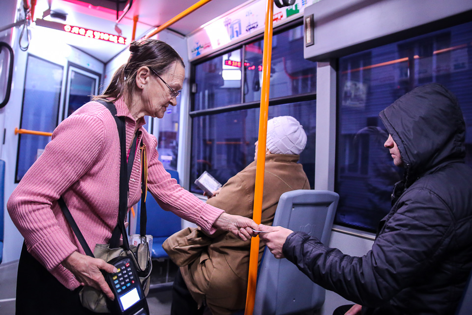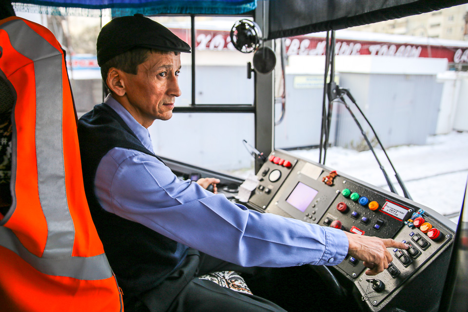 Теплый, удобный, экономичный, красивый — за три месяца эксплуатации на 4-м маршруте он получил хорошие отзывы как сотрудников муниципального предприятия «Электрический транспорт», так и пассажиров. Последние вместе с водителем и кондуктором стали героями нашего фоторепортажа, в котором отражена 11-часовая рабочая смена экипажа в один из октябрьских выходных.