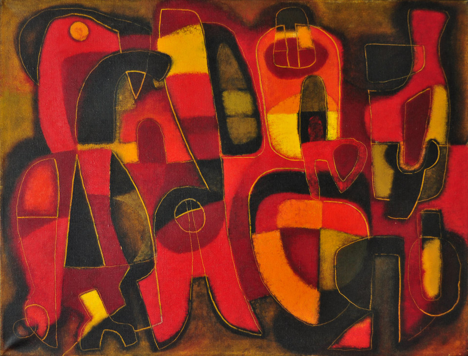 Андрей Титов (1966 г.р.). Красные спальни. Серия «Сны Лукича». 1992. Холст, масло