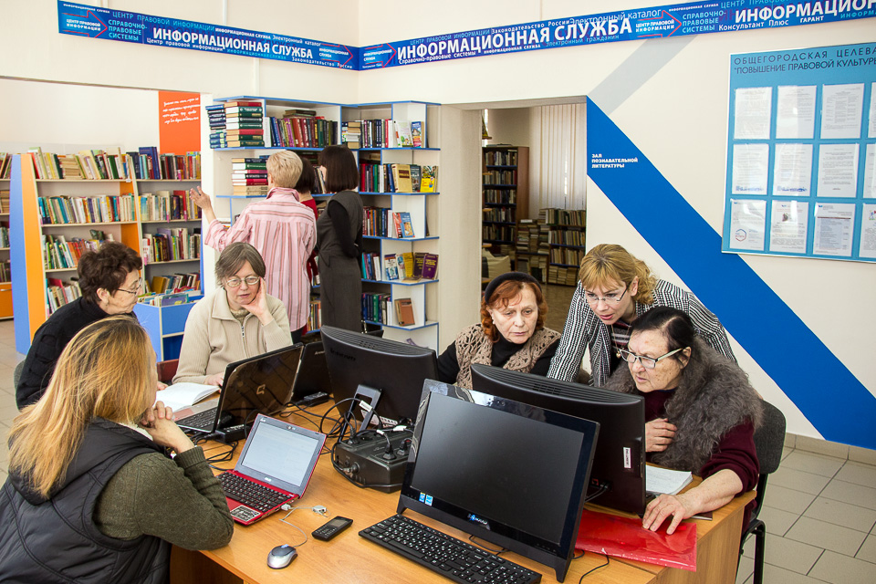 В центре внимания этого проекта — не базовая компьютерная грамотность, а работа с государственными и муниципальными услугами в электронном виде, а также изучение возможностей сайтов и онлайн-сервисов органов власти. В роли педагогов выступают библиотекари, занятия проходят в утреннее и дневное время. Наш репортаж — из Центральной городской библиотеки на бульваре Победы, 4.