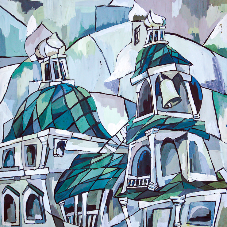 Лиза Новопашина, 16 лет. Звон колоколов, как эхо старины. Гуашь. Педагог М.И. Черткова (ДШИ № 9)
