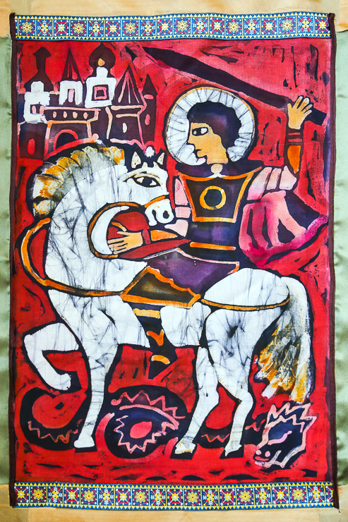Андрей Заварукин, 14 лет. Святой Георгий. Горячий батик. Педагог Н.М. Вакуленко (ДХШ № 3)
