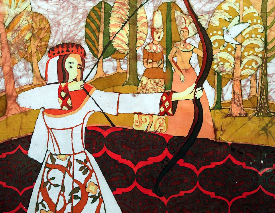 Мария Мордвинцева, 14 лет. Охота. Горячий батик. Педагог Т.В. Алферова (ДХШ № 1)