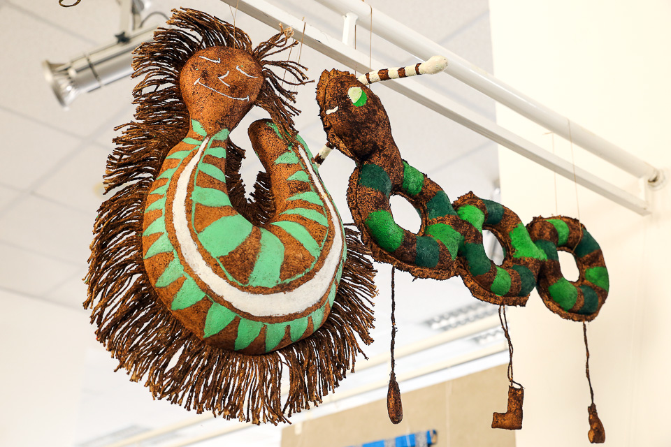 Чердачная игрушка «Гусеница» (коллективная работа). Педагог Л.А. Хасанова (ДШИ № 16)