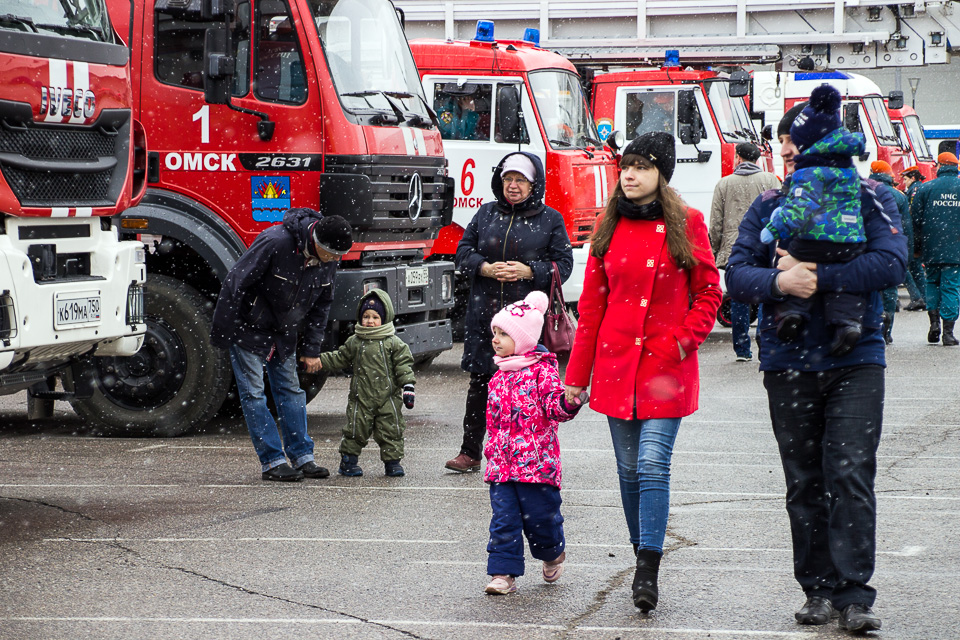 Несмотря на прохладную погоду, субботний гарнизонный развод личного состава и пожарной техники омских спасателей прошел при участии большого числа горожан. После показательных выступлений и парада детям и взрослым показали современное оборудование и дали возможность узнать все о героической работе пожарных.