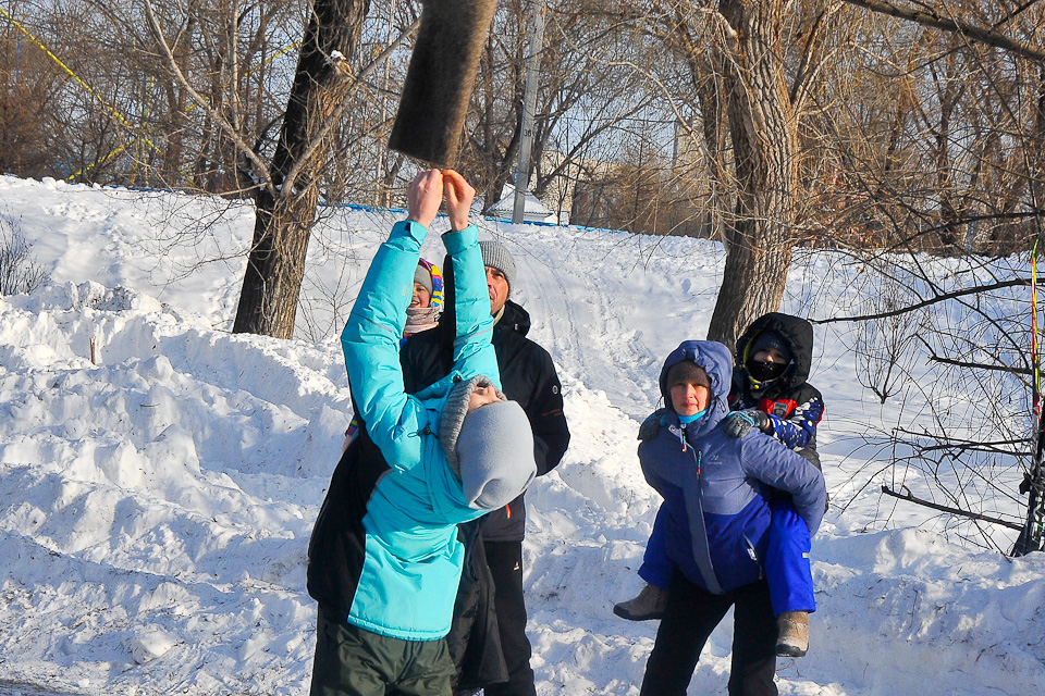 Неожиданный перечень спортивных дисциплин предложили организаторы фестиваля семейного спорта «Дружим с физкультурой» участникам — лыжная дистанция и метание валенка на дальность.