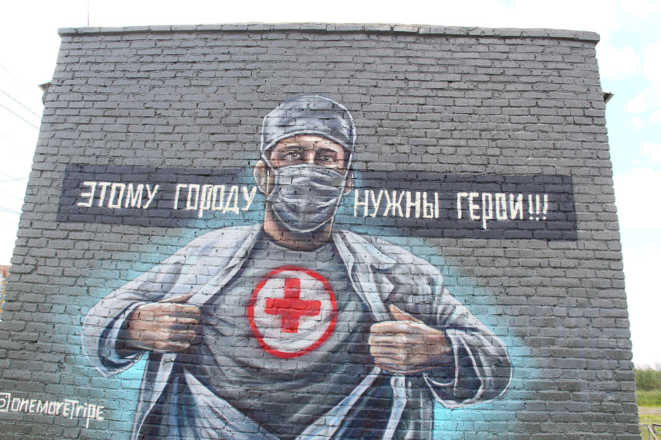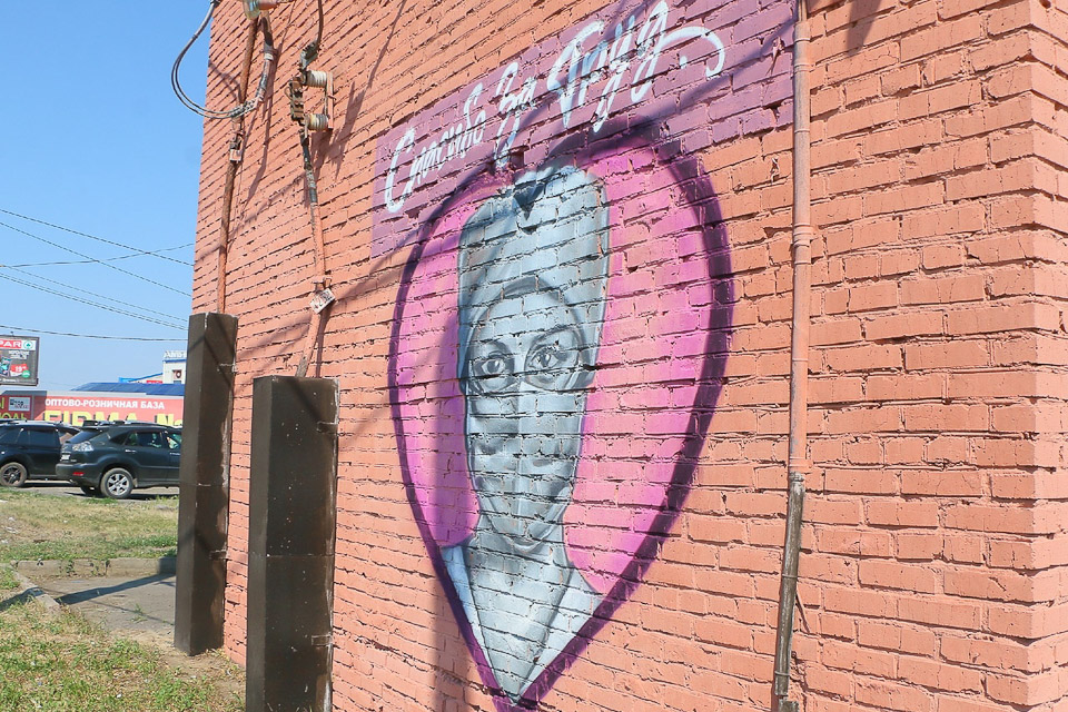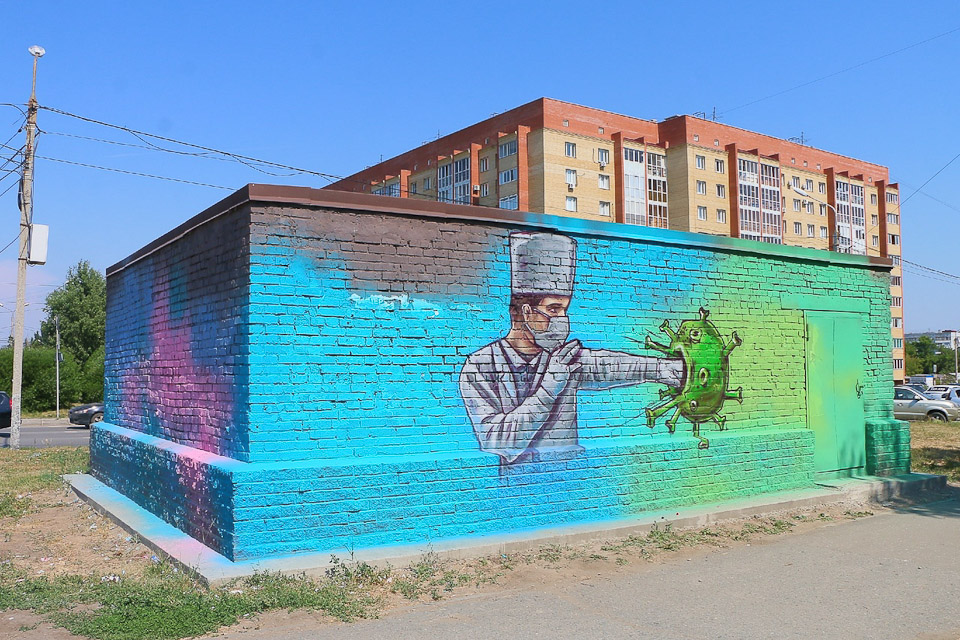 Граффити на стенах подстанции создали в благодарность врачам, медсестрам и персоналу больниц. Творческий замысел воплотил известный омский художник Дмитрий Трипов.