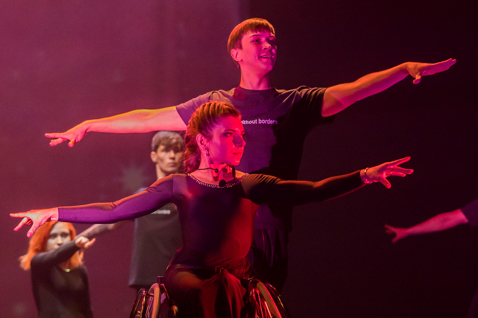 Новая постановка общественной организации «Танцы без границ» получилась сценически яркой и выразительной, а по настроению — очень личной и проникновенной. Языком хореографии была рассказана история о девочке, которая не могла ходить, но научилась танцевать и достигла профессионального признания в этой сфере.