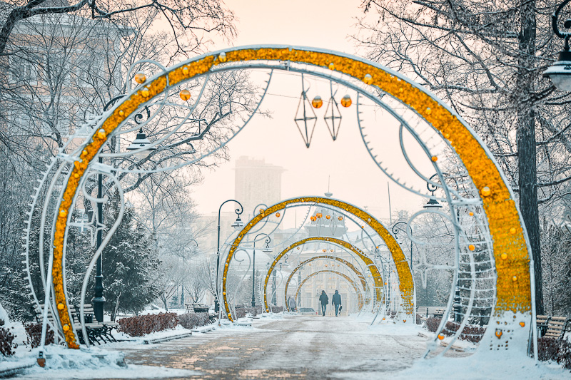На начальной точке новогоднего маршрута создан образ «русской души» — гармонь. Это символ, посвященный народному творчеству Омска. Здесь и художественная красота инструмента, и поэтичное звучание родных мотивов...