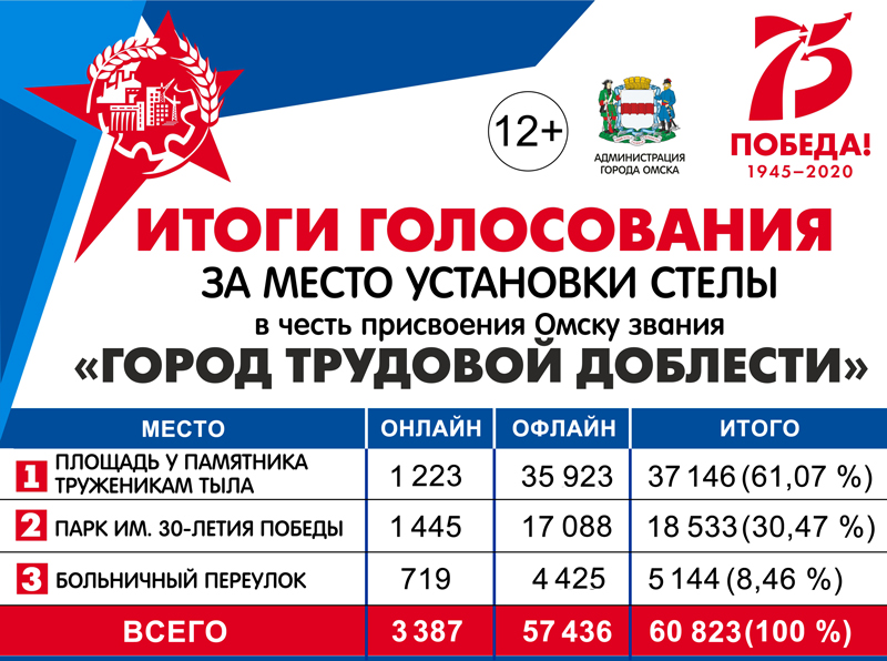 По итогам онлайн и офлайн-голосования принято решение установить стелу на площади у памятника труженикам тыла.