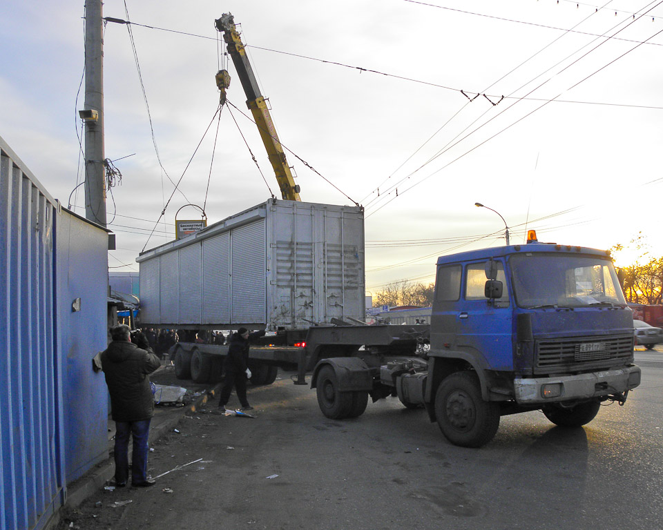 Работы по организации выноса самовольно размещённых временных объектов проводят специалисты городского департамента имущественных отношений. Торговые павильоны и киоски, установленные с нарушением законодательства, владельцы которых уклонялись от выполнения судебных решений, выносятся при участии судебных приставов и сотрудников полиции.