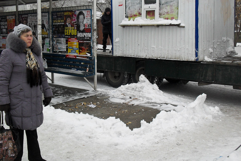 Из-за самовольно размещённого объекта на остановке общественного транспорта тесно