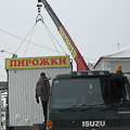 Идёт погрузка объекта на платформу для транспортировки на спецстоянку