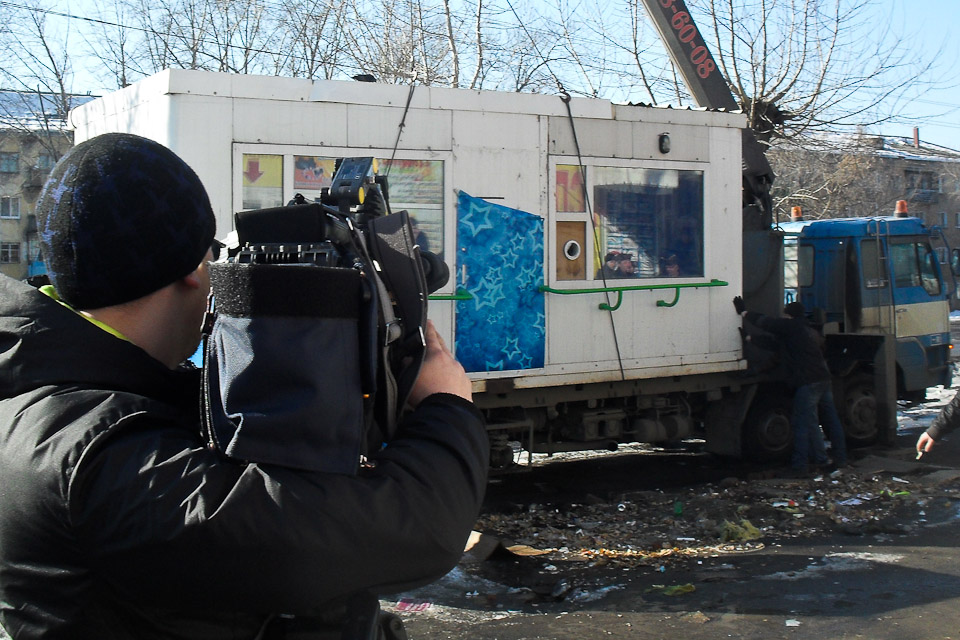 Самовольно установленный возле административного здания № 144 по улице Мельничной объект (владелец А. Пономарёв) 26 марта был вывезен на хранение в Комбинат специальных услуг.