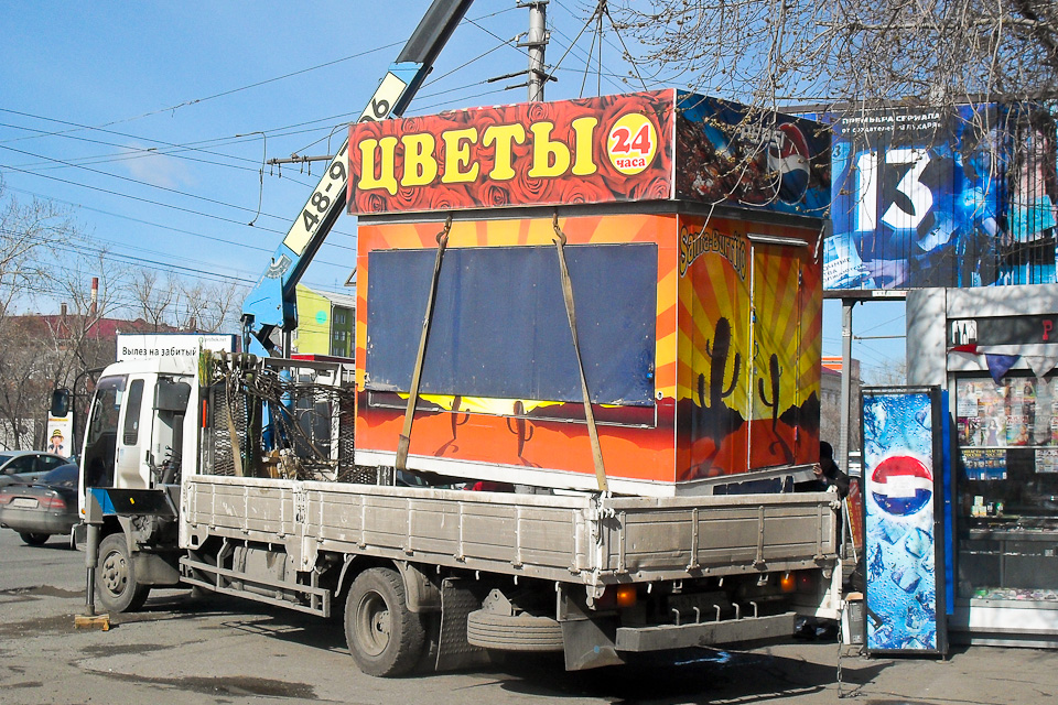 Незаконно установленный цветочный павильон вывезен с проспекта Мира