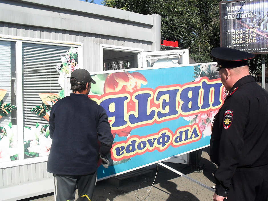 2 и 3 сентября с улиц города исчезли сразу пять незаконно установленных павильонов, торговавших цветами и блюдами быстрого приготовления. Четыре из них были вывезены предпринимателями самостоятельно во исполнение ранее изданных распоряжений.