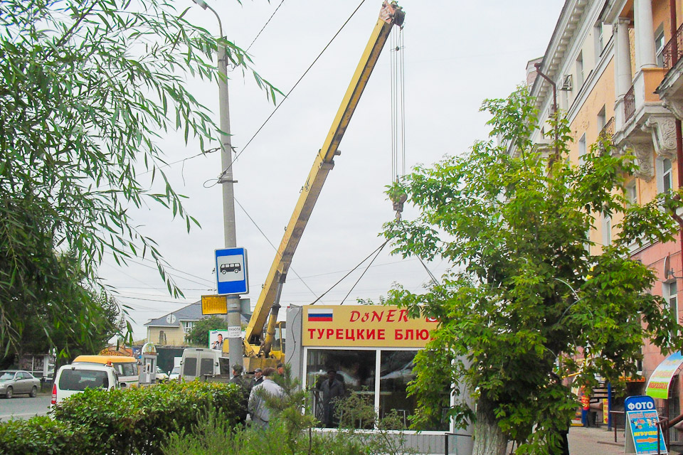 Специалисты городских служб продолжают освобождать от незаконно установленных объектов улицу Богдана Хмельницкого — одну из главных магистралей центра города. Большая часть павильонов и киосков занимались торговлей горячим питанием.