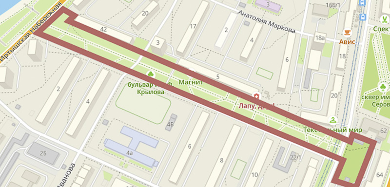 Пешеходный бульвар протяженностью почти 600 метров связывает Иртышскую набережную с улицей Серова и представляет собой озелененную зону с дорожками для прогулок и тихого отдыха. В ходе работ, проведенных в 2011 году, бульвар был вымощен плиткой, вдоль него появились скамейки для отдыха, газоны и клумбы, а главной достопримечательностью стала Аллея молодоженов из деревьев, которые высаживали жители ближайших домов в честь рождения своих семей. За прошедшие годы маленькие саженцы превратились в большие деревья. Пришло время обновить территорию вокруг: заменить тротуарную плитку и малые архитектурные формы, обогатить существующие зеленые насаждения новыми видами деревьев и кустарников.
