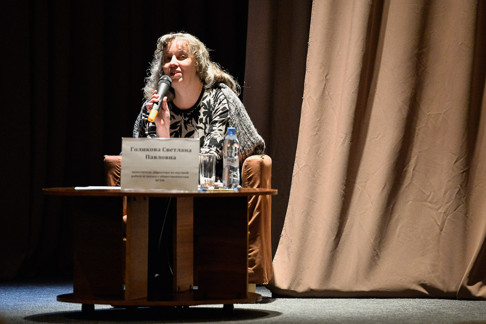 Конференцию ведет Светлана Голикова, заместитель директора по научной работе и связям с общественностью НГХМ