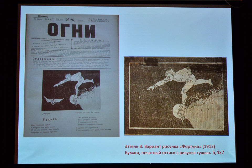 Она рассказывает об атрибуции произведений киевского графика В. Эттеля из архива А. Сорокина…