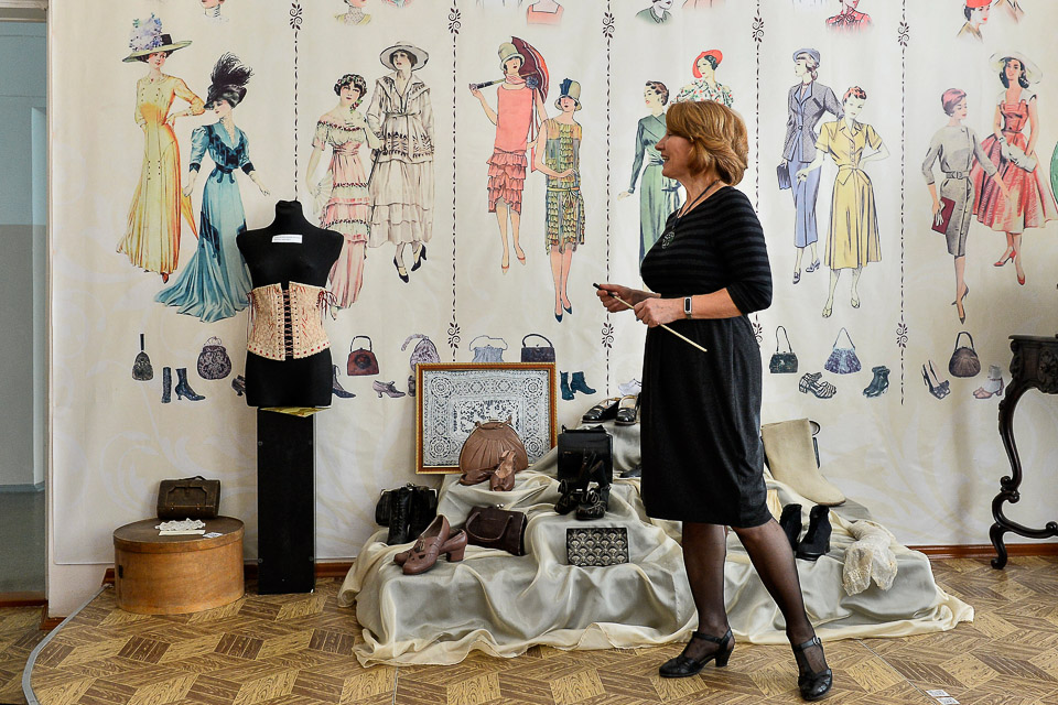 Ведущий методист музея Новосибирска Ирина Хлебникова представляет экспозицию «Мода из комода»