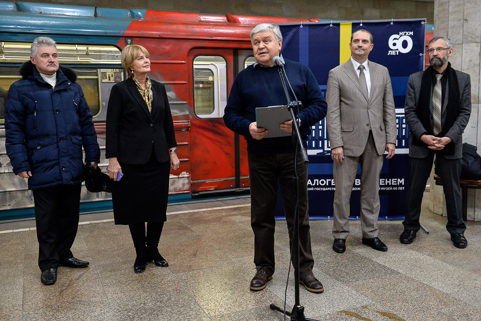 В метро в одном из вагонов поезда-музея «Новониколаевск — Новосибирск» была представлена экспозиция, посвященная НГХМ