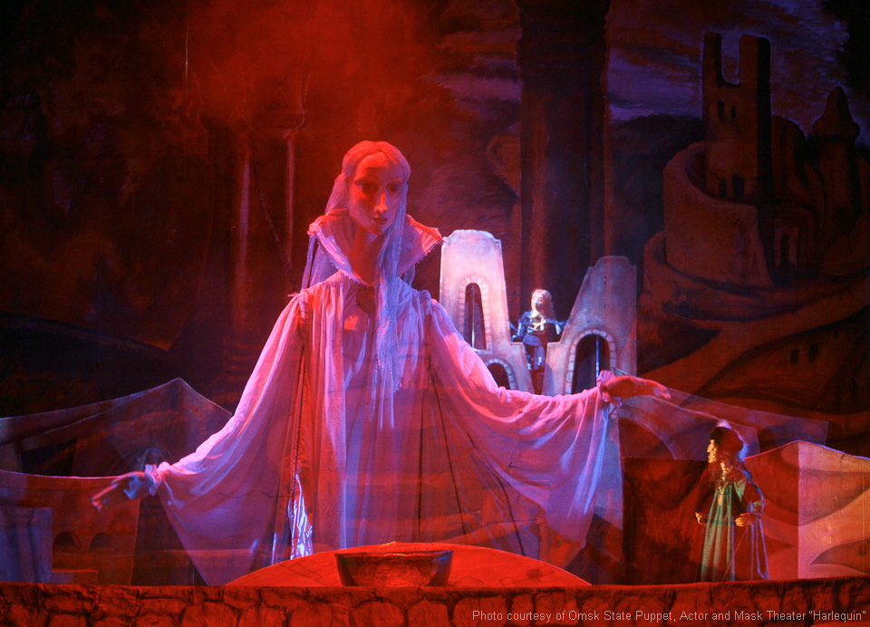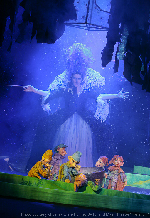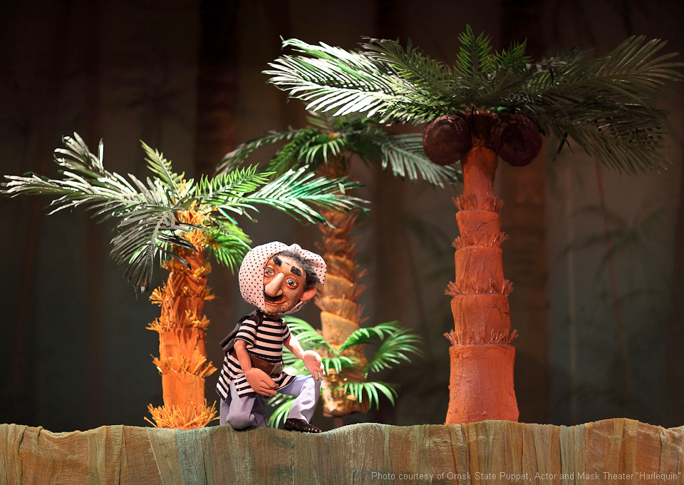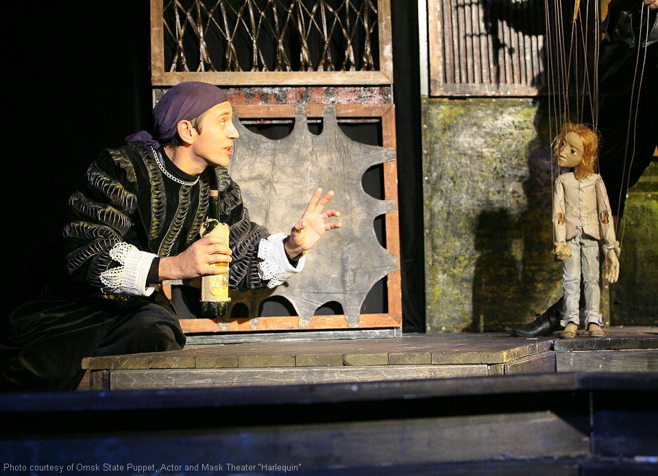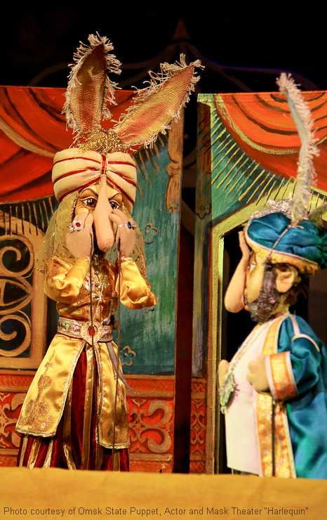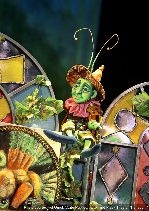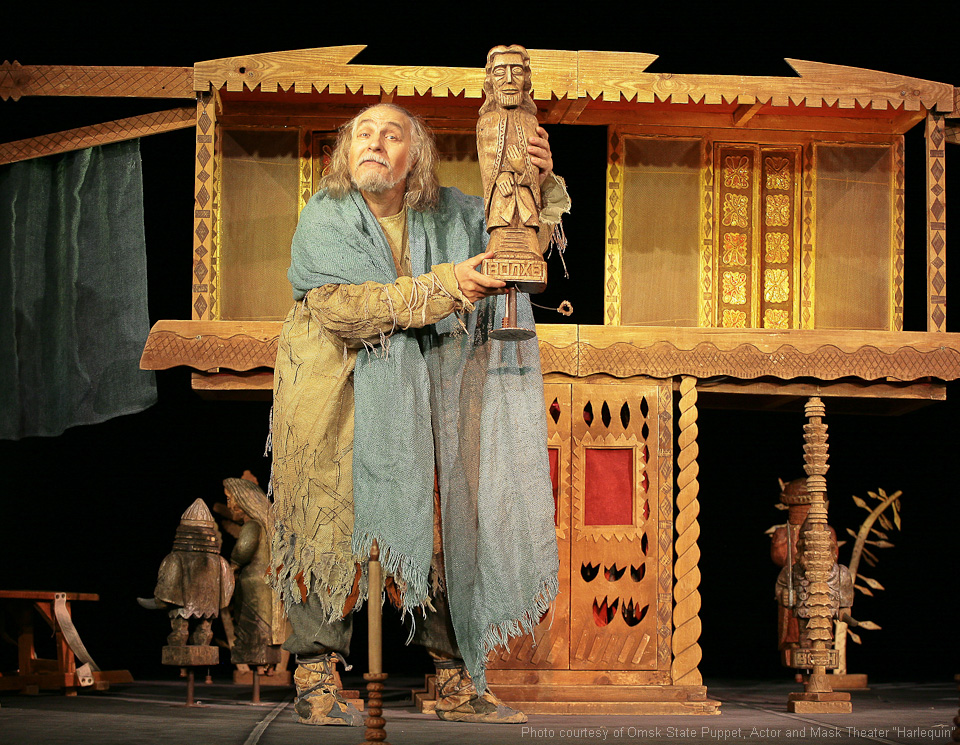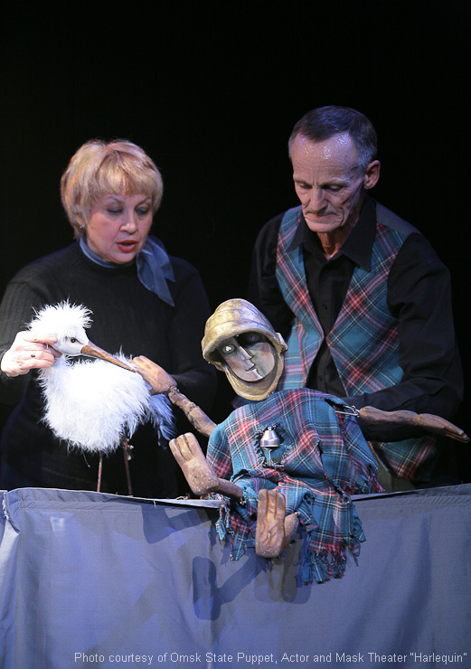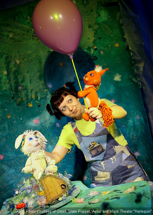 Fotos aus dem Archiv des Omsker staatlichen Theater für Puppen, Schauspieler, Maske „Harlekin“.