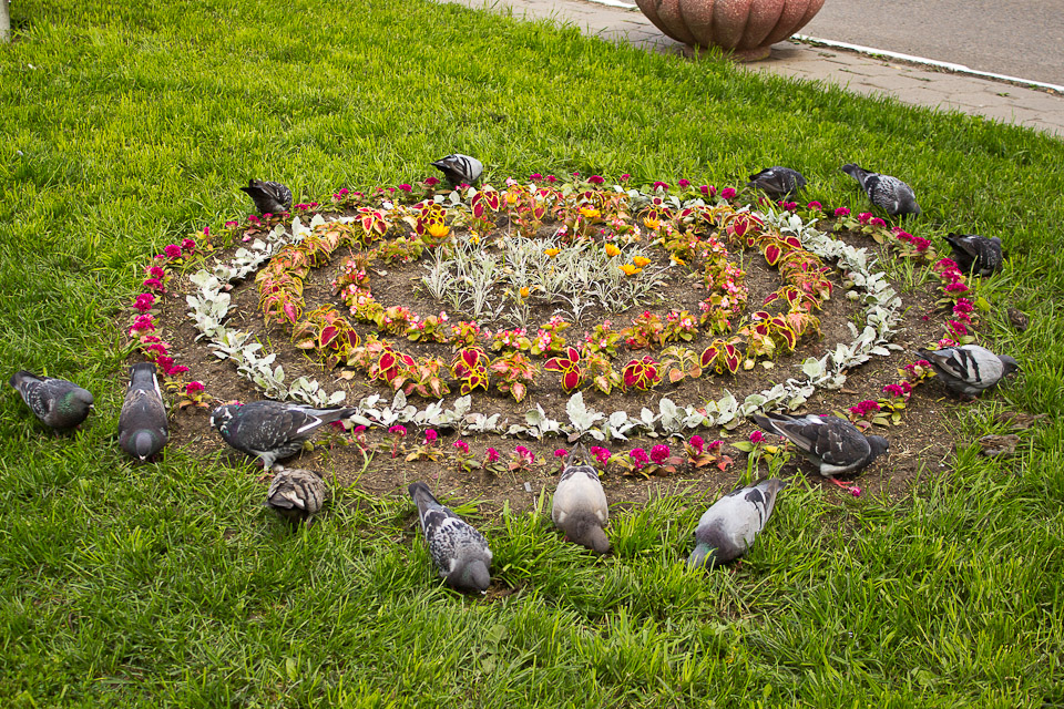 Голуби облюбовали новую клумбу