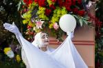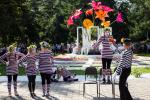 Центральная клумба Воскресенского сквера На фоне огромного букета разыгрывается пантомима Цветочный музыкальный инструмент отлично вписывается в вертикальный кадр