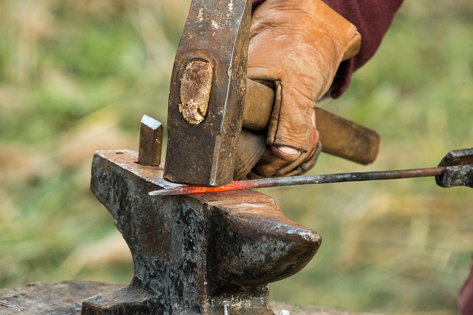 Вместе с кузнецом гости фестиваля выковывают несложные изделия