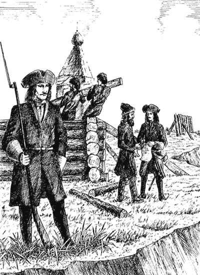 Население крепости состояло из казаков, свободных переселенцев и ссыльных. Гарнизон крепости включал в себя 36 человек регулярного войска и 209 казаков.