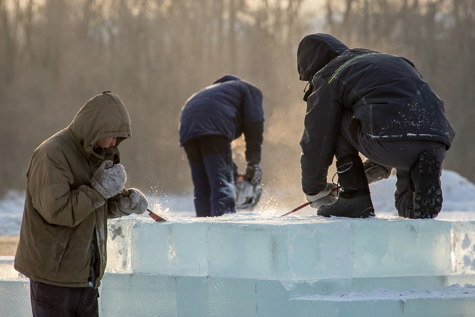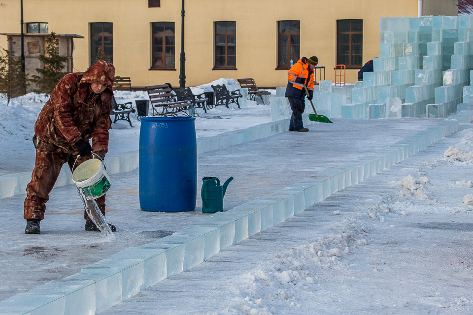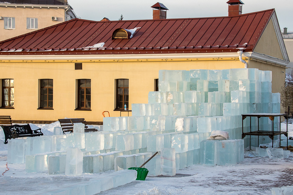 Строительство ледового городка в Омской крепости