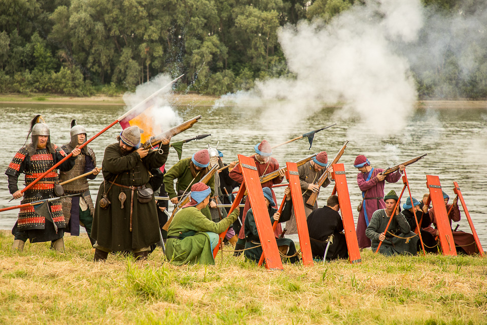 Служилые люди увлекательно рассказывают об устройстве фитильных ружей