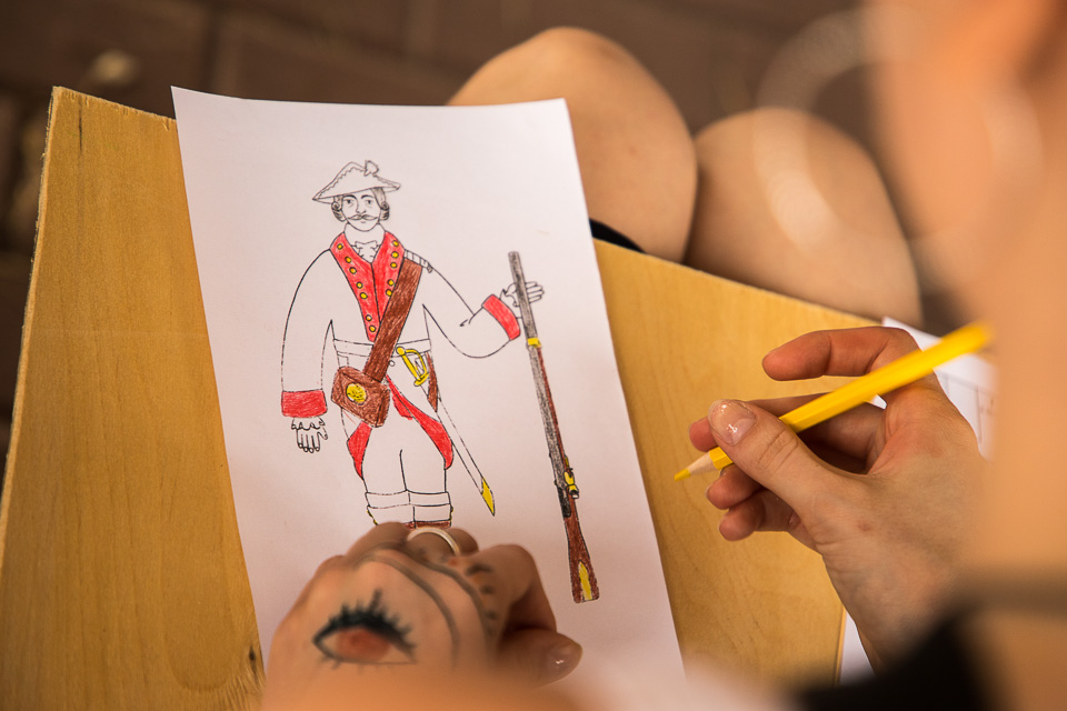 Кто-то раскрашивает мундир, глядя на выставочный образец
