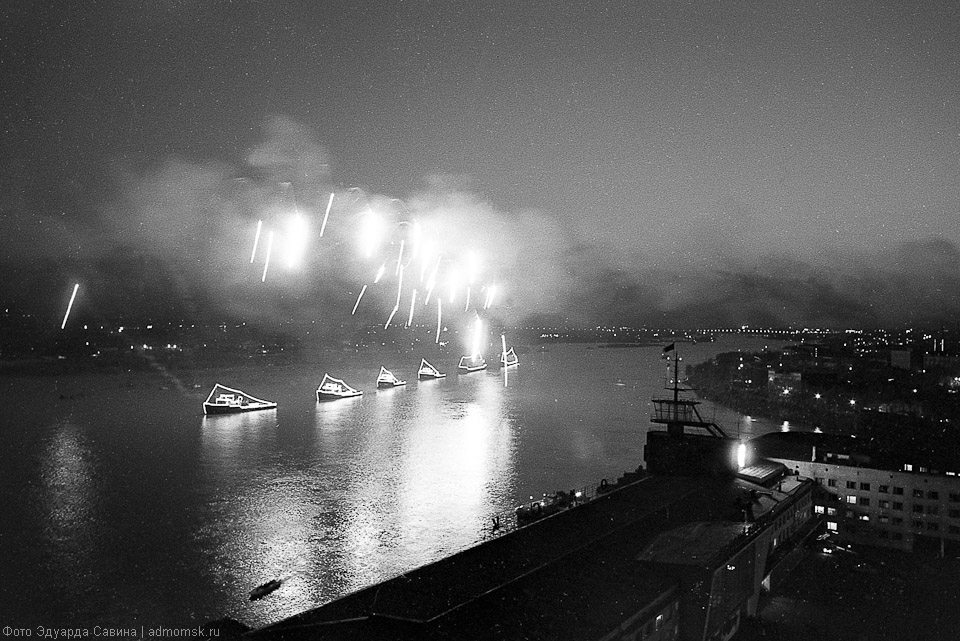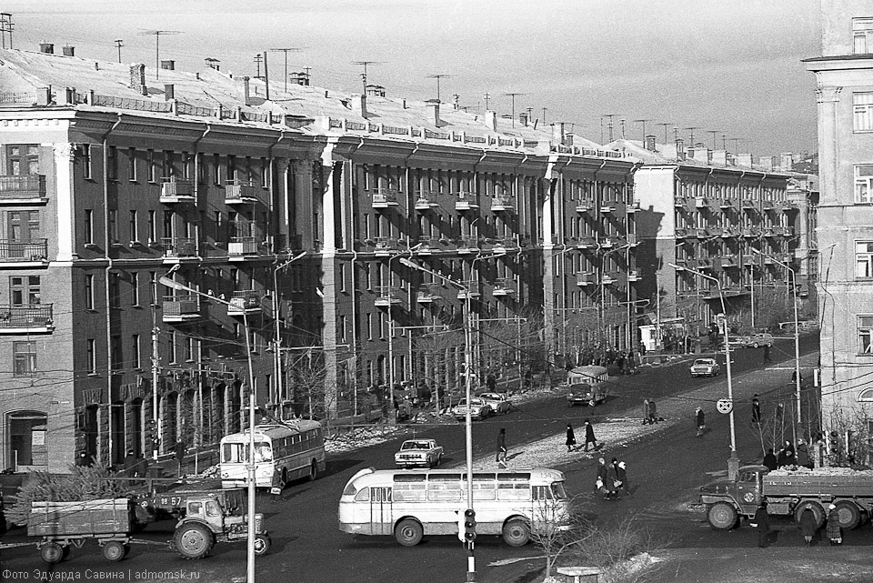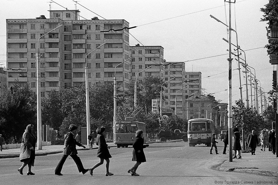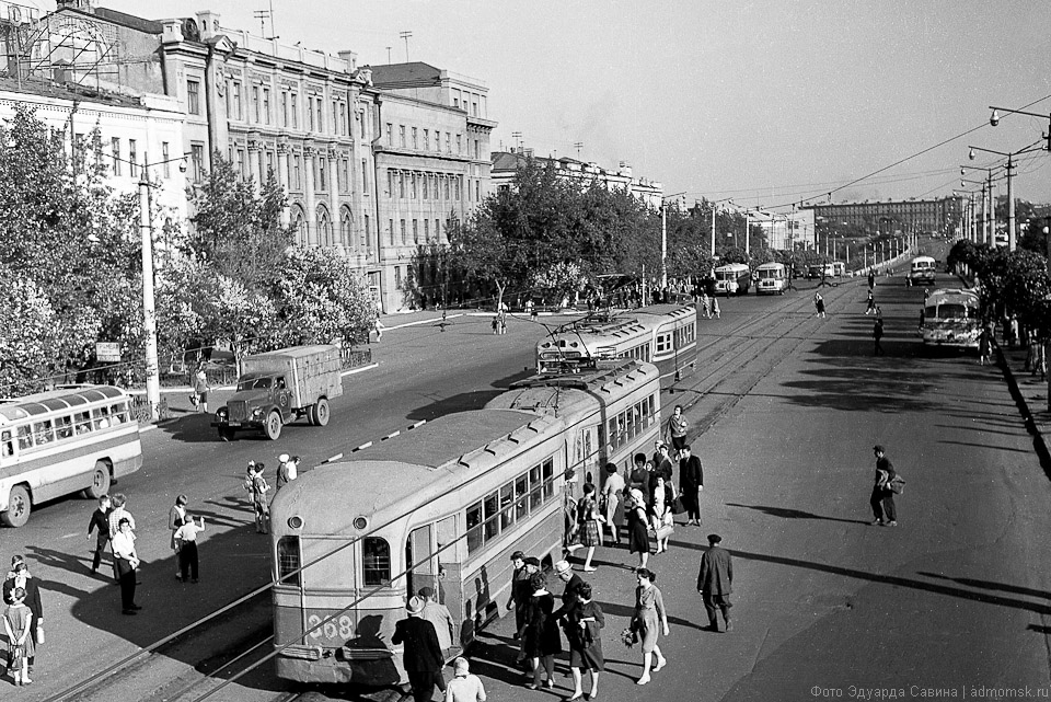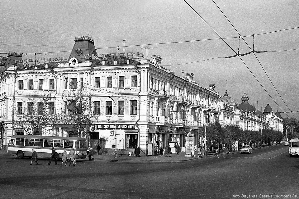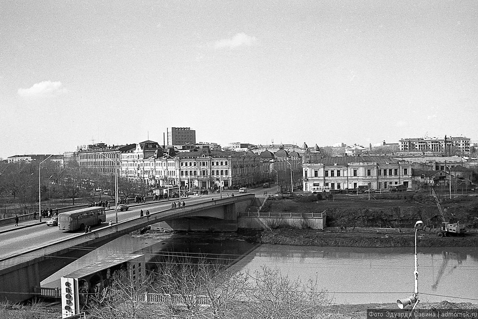 На снимках — узнаваемая центральная часть города. Сегодня мы не досчитаемся многих объектов, сохранённых на чёрно-белой плёнке: памятников деревянной архитектуры, кирпичных построек начала XX века, сотен деревьев вдоль городских улиц и в скверах. Но ключевые объекты городской среды всё те же: две реки, мосты, проспекты, «сталинки» на Ленинградской площади, старинный Любинский, пожарная каланча, омские фонтаны…